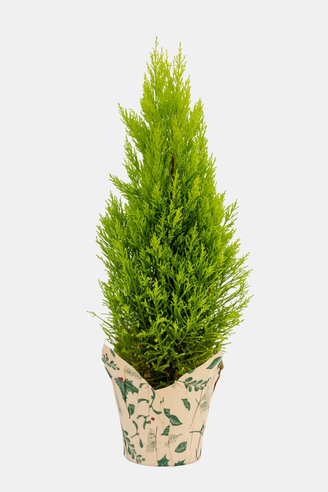 Lemon Cypress is a beautiful lime green shrub that gives off a lemony scent when you brush against its foliage.